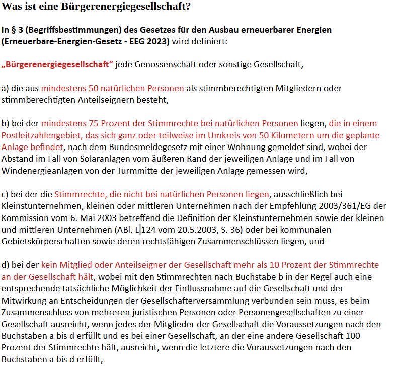 - 2023-05 - Österreich geht offenbar voran - mit der Oldenburger EWE AG: Energiegemeinschaft, EEG - gemeinsam Energiewende erleben Du möchtest lokal erzeugte Strom beziehen oder teilen - Die neuen gesetzlichen Bestimmungen bieten dir und deinen Nachbarn die Möglichkeit, sich in Energiegemeinschaften zusammenzuschließen und den Strom gemeinsam zu nutzen. Mit eeg2go findest du die passende Energiegemeinschaft in deiner Nachbarschaft oder die einfache Möglichkeit, eine eigene EEG zu gründen und langfristig kostenoptimal zu betreiben. Euren Strompreis bestimmt ihr selbst! Garantiert immer günstiger als von deinem Energieversorger. Durch die reduzierten Netzentgelte, den Wegfall des Ökostrombeitrags sowie der Befreiung von der Elektrizitätsabgabe können alle Mitglieder einer Energiegemeinschaft profitieren.Siehe: EEG2GO